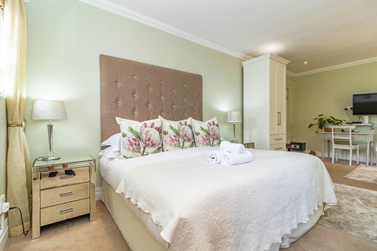 Our Luxury Rooms feature air conditioning, a king-sized bed, and a private bathroom equipped with both a bath and a shower. Each room also includes a bar fridge and a tea and coffee station for your convenience.